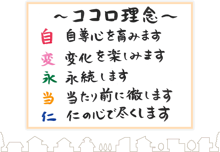 会社概要 会社概要 社名 大仁産業株式会社 住宅部 ココロホーム 連絡先 【本 社】 〒869-2401 熊本県阿蘇郡南小国町赤馬場3556-4 TEL:0967-42-0463 FAX:0967-42-0735 創立 1966年4月 代表取締役 俵 一幸 資本金 50,000,000円 業務内容 1.土木工事 2.建築工事 3.宅地建物取引業 4.測量業 登録・許可 特定建設業 熊本県知事 許可(特-22)第2576号 一般建設業 熊本県知事 許可(般-22)第2576号 宅地建物取引業者免許番号 熊本県知事 (2)第4615号 測量業 登録第(2)-30322号 第三者保証 (株)日本住宅保証検査機構(JIO) 取引銀行 肥後銀行 熊本銀行 営業時間 9:00~18:00 定休日 水曜日 沿革 1966年4月 熊本県阿蘇郡南小国町に大仁産業を創業し、1989年大仁産業株式会社に組織変更する。 2011年10月 住宅部 「ココロホーム」を新設し、2013年10月に菊陽店をオープンする。