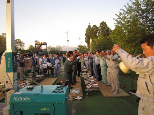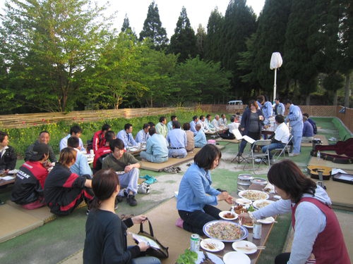 さて、その夕方から社員全員と協力会社、関連会社の方々を含め50人近い参加者で賑やかに花見の宴会が展望公園で行われました。
