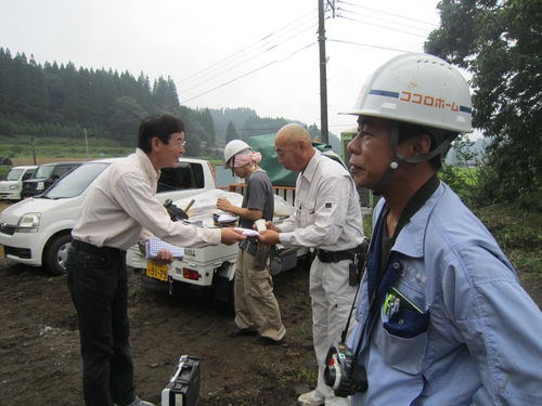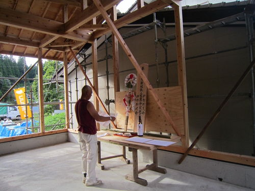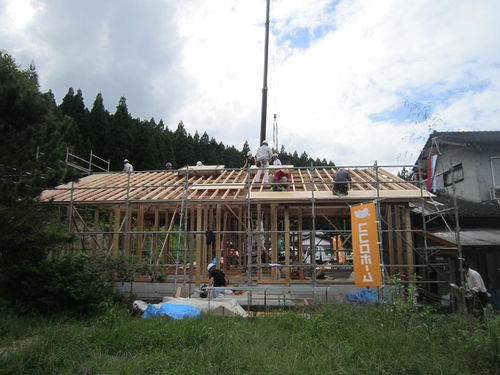 上棟! 2013年9月9日 I様邸の上棟オリンピックが東京で開催されると決まった、縁起のいい朝、I様邸の上棟がはじまりました。心配されたお天気も雨が降ることなく、むしろ曇りのベストコンディションで作業ができました。施主様からまめしぼりをお配りいただき、作業後の上棟の儀式も無事終え、本当に家創りの大事な一歩を刻むことができました。これからさらに、施主様のご期待にお応えし出来るよう、みんなで一致団結して安全第一で頑張ります! 住まいの応援隊長 佐藤あさみ