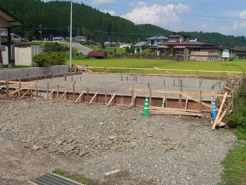 工事進行状況 2012年9月6日 こんにちは♪日中はお日様がキラキラしていますが、朝晩はすごしやすい季節になりましたね。今回は【S様邸共同住宅工事】の進行状況をお知らせします。水道管の配管・埋設工事が無事に済、基礎工事中です。来週初めには基礎配筋検査があります。 私にはまだまだ聞き慣れない建築用語がたくさん出て来ます。工事の進行と共に覚えていけたらと思っています。受付 岩本