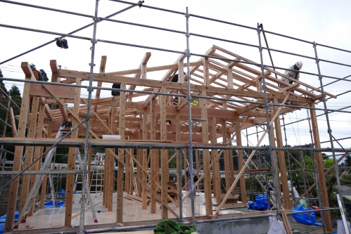 祝♪上棟 2018年4月13日 先日、M様邸の建方・上棟を迎えました♪4月に入り、暑いと感じる日々が続く中…この日は雪がちらつく建方となりました(;’∀’)季節外れの雪ですが、職人さんはテキパキされていてどんどん進んでいきました。 そして2日目、良いお天気に恵まれた中での上棟!餅まきにも多くの方に参加していただきありがとうございました♪ これから職人さんとともにM様邸を無事お引渡しできるように安全第一で進めてまいります!M様、誠におめでとうございます♪