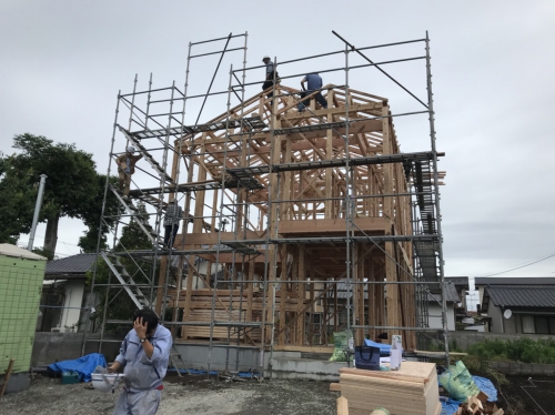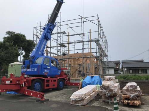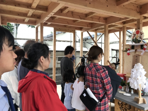 祝♪上棟 2018年5月29日 S様小雨の降る5月28日、S様邸の上棟を迎えました(*’▽’) 毎回職人さんのすごさを痛感します☆ 無事棟木も上がりました(^^♪ S様、上棟おめでとうございます☆これからの工事も安全に進めてまいります!!おもてなしの数々、ありがとうございました(^^♪
