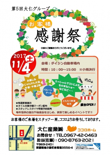 11月4日、感謝祭! 2017年10月31日 今年も、やります!感謝祭!スタッフ一同、お待ちしています。今年のバザーはベトナム料理もありますよ~!ぜひぜひ、ご来場ください!お待ちしています(^_-)-☆